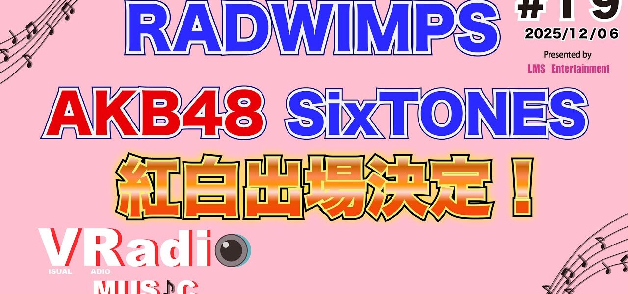 「音楽が好きだ!」その気持ちひとつで始まった番組。紅白歌合戦、最新音楽ニュース、フェス、テレビの音楽番組まで、音楽好きによる音楽好きのための30分番組「VRaido MUSIC(ビジュアル レィデオ ミュージック)」!MC・ヤマシ(タ)が、今話題の音楽や注目アーティストを自由に語ります。Spotifyでは毎週金曜19時から、YouTubeでは毎週金曜22時から配信中。リスナーからのメールや感想も随時紹介!あなたの“推しトーク”、一緒に盛り上げましょう!