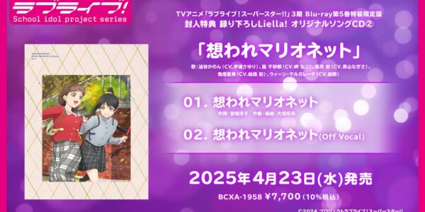 【試聴動画】想われマリオネット/澁谷かのん、嵐 千砂都、葉月 恋、鬼塚夏美、ウィーン・マルガレーテ【TVアニメ「ラブライブ!スーパースター!!」3期 Blu-ray第5巻 特典CD】