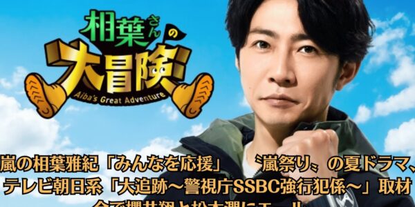 嵐の相葉雅紀「みんなを応援」 〝嵐祭り〟の夏ドラマ、テレビ朝日系「大追跡~警視庁SSBC強行犯係~」取材会で櫻井翔と松本潤にエール。相葉雅紀がPrime Video新番組で大冒険、生きものたちと戯れる