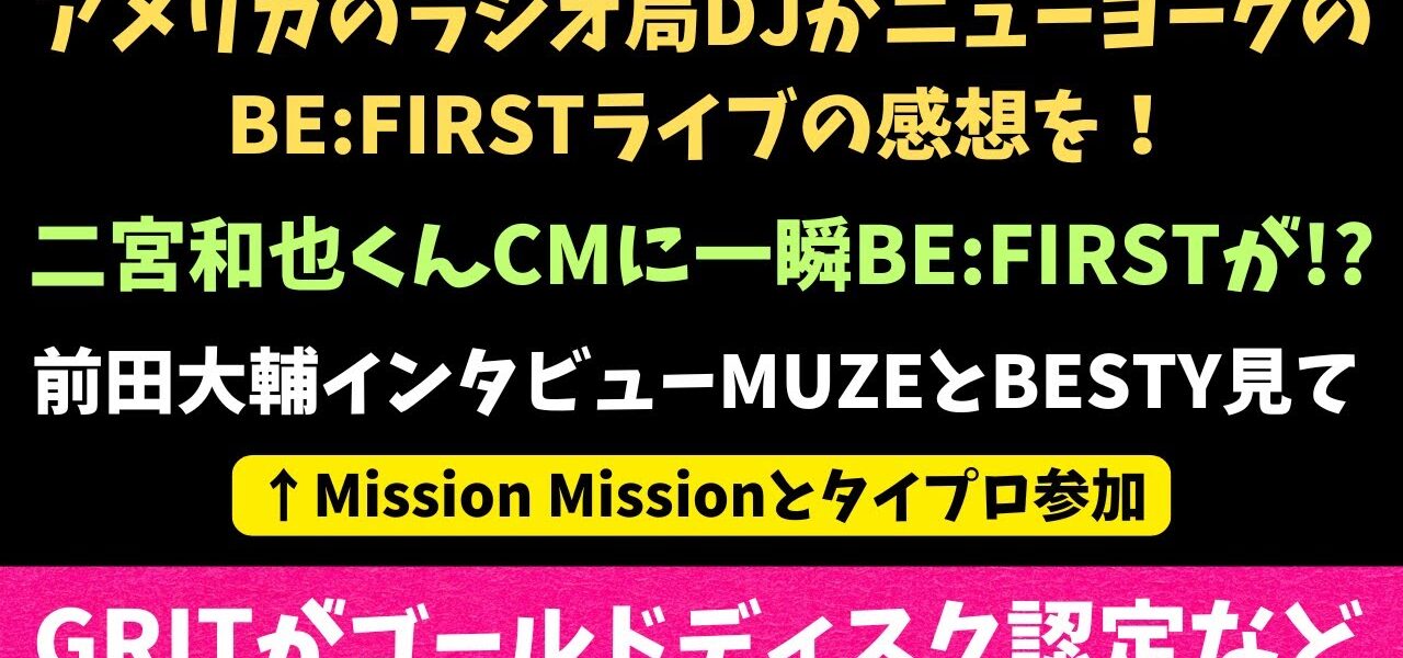 【BE:FIRST】嵐の二宮くんCMに一瞬彼らが映ってる!アメリカのラジオDJがビファのライブ感想!前田大輔くんのインタビューやGRITゴールドディスクなど