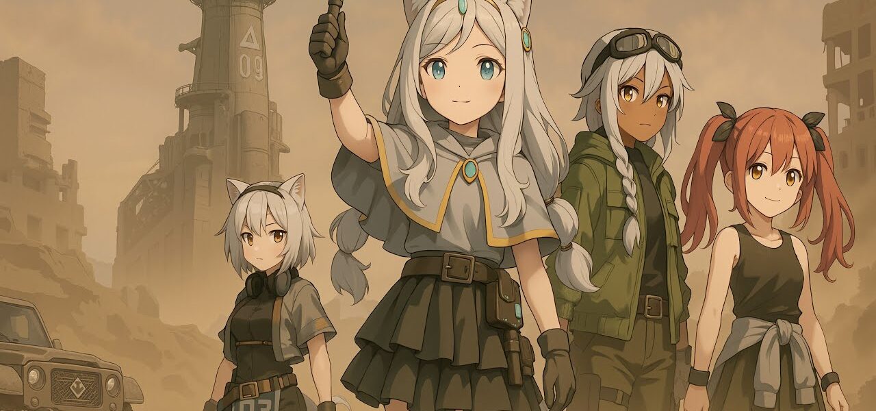 荒れた砂海を旅する四人は、深刻な水不足にあえぐ都市に立ち寄る。痕跡を辿るうち、上流の町に設置された“水の流れを止める装置”の存在が浮かび上がる。彼女たちは方角を定め、その町へ向かい行動を開始する——数字と記号だけが残る標識、錆びた塔「03」、そして鈴の四拍が道を示す世界で。#嵐の少女 #オリジナルMV #砂漠世界 #4k