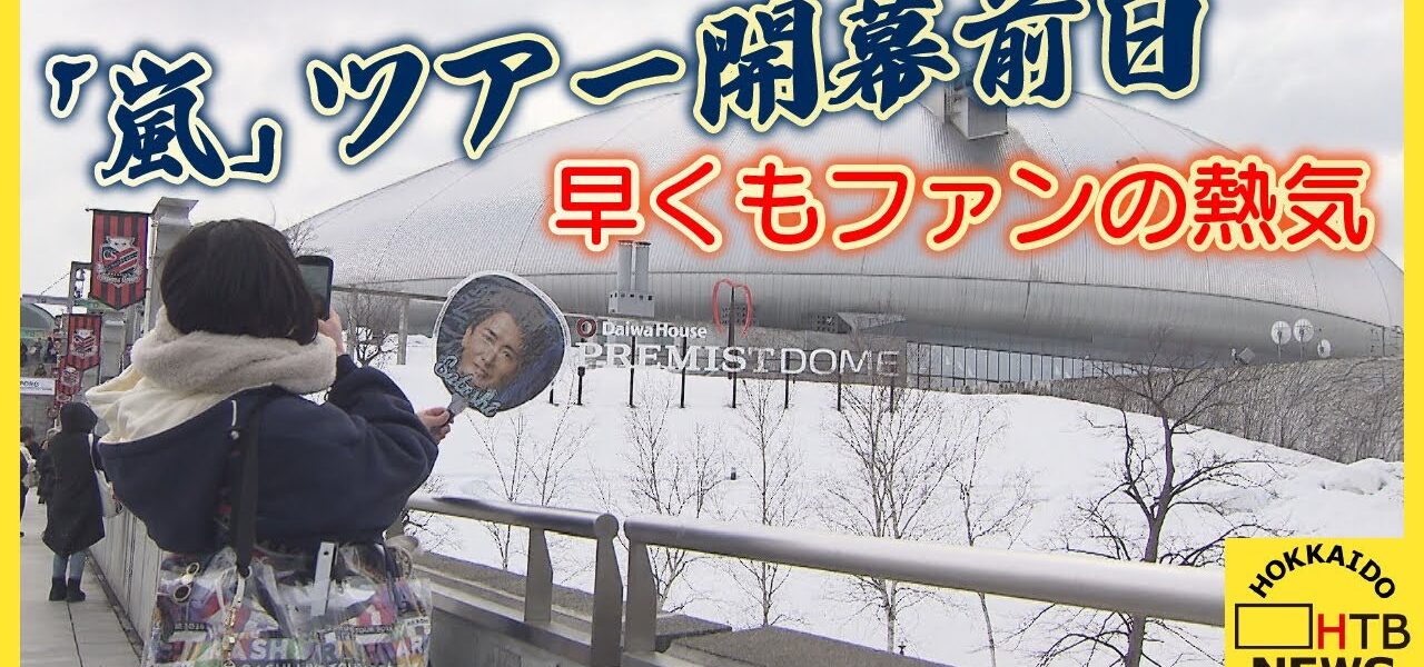 「ついに明日開幕となる嵐のラストツアーですが、会場のプレミストドームでは今日からグッズ販売が始まっていて、会場には多くのお客さんが集まっています」
