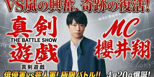 【緊急速報】嵐・櫻井翔がフジテレビに奇跡の帰還!『VS嵐』の興奮が完全復活…新番組『真剣遊戯!THEバトルSHOW』4月20日爆誕!俳優軍VS芸人軍の極限ガチンコバトルで日本中が熱狂の渦に飲み込まれる