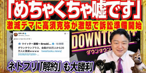 高須克弥激怒。「めちゃくちゃ嘘です」。松本人志全否定。テレビに勝ち目がない。「ダウンタウン+」激減デマ訴訟宣言。ネトフリ「解約」祭りでも大勝利|みやわきチャンネル(仮)#2553