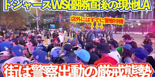 ドジャースWS優勝直後のダウンタウンがカオスすぎる!今年もファン“暴徒化”で現地LAは異常事態!ドジャースvsブルージェイズ ワールドシリーズ第7戦 優勝決定戦直後