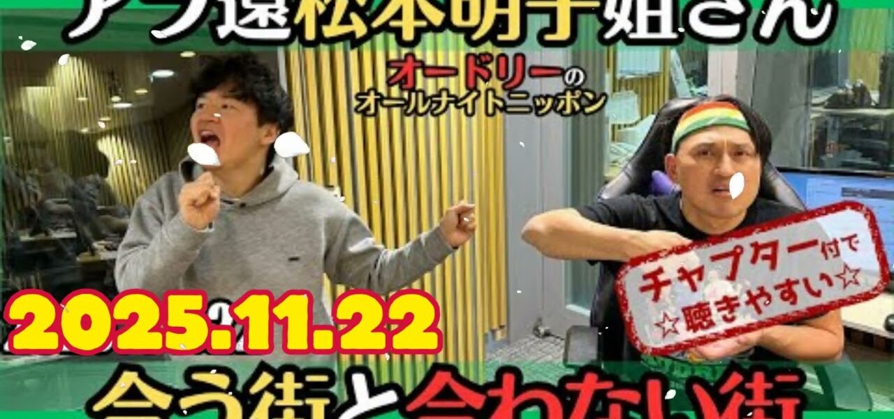 【オードリー・ラジオ】アラ還松本明子姐さんとお仕事・合う街と合わない街2025.11.22オードリーのオールナイトニッポン