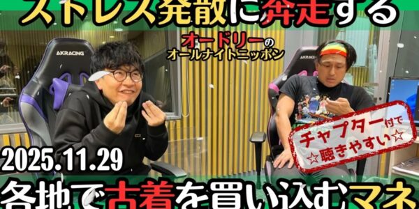 【オードリー・ラジオ】ストレス発散に奔走する・古着を買い込むマネージャー2025.11.29オードリーのオールナイトニッポン