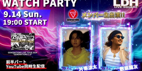 【LDH LIVE SQUARE】「GENERATIONS LIVE TOUR 2024 “GENERATIONS 2.0″」WATCH PARTY(前半同時生配信/片寄涼太 数原龍友 生出演)
