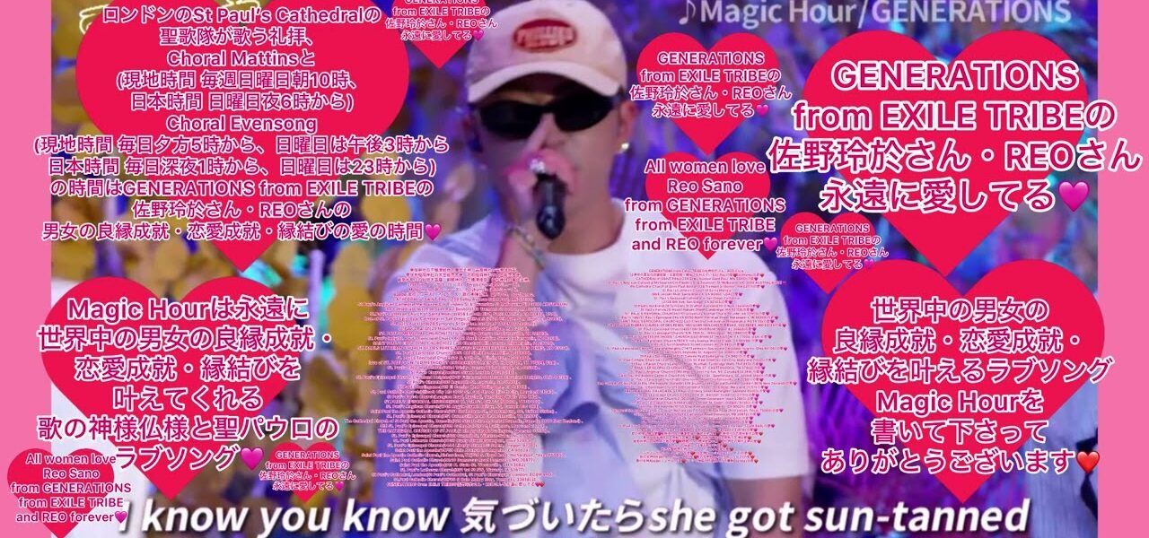 Magic Hourを聖パウロの祝日を迎える今月リリースして下さった玲於さんは、世界中の男女の良縁成就・恋愛成就・縁結びを叶えている歌の神様仏様の愛、聖パウロの愛、大きな聖歌隊を持つ聖パウロに捧げられた教会の愛そのものです🩷