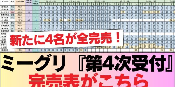 【日向坂46】新たに4名が全完売!ミーグリ『第4次受付』完売表がこちら【16thシングル クリフハンガー】 #日向坂46 #日向坂 #日向坂で会いましょう #乃木坂46 #櫻坂46
