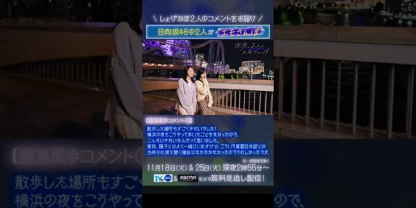 【日向坂46】テレビ朝日 11月のバラバラマンスリー『深夜、二人のエモさんぽ』“しょげかほ”からコメント到着!!(四期生 正源司陽子&藤嶌果歩) #正源司陽子 #藤嶌果歩 #日向坂46 #shorts