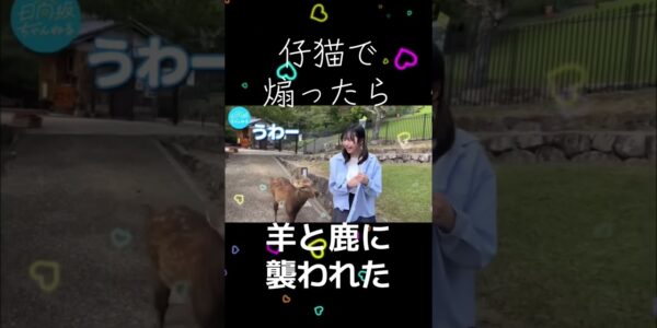日向坂46の藤嶌果歩さんが羊の群れと鹿の集団に囲まれるカオスをご覧下さい #日向…