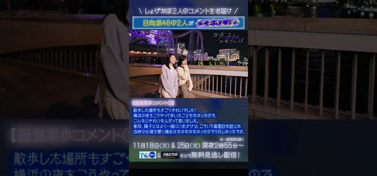 【日向坂46】テレビ朝日 11月のバラバラマンスリー『深夜、二人のエモさんぽ』“しょげかほ”からコメント到着!!(四期生 正源司陽子&藤嶌果歩) #正源司陽子 #藤嶌果歩 #日向坂46 #shorts