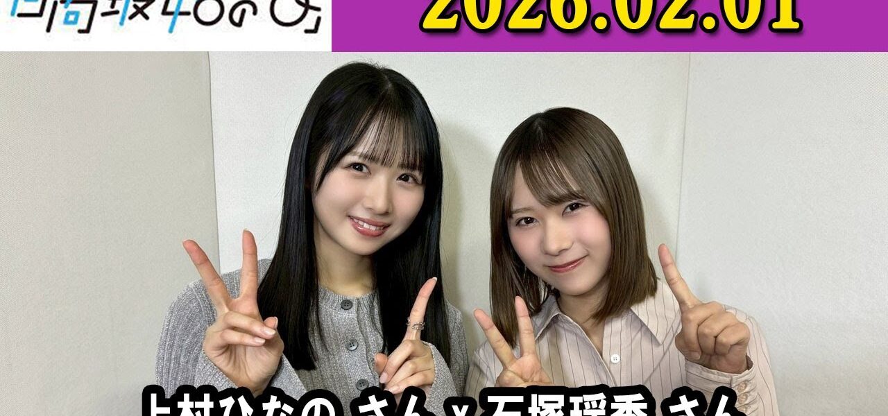 ホームページラジオ日向坂46の「ひ」上村ひなの さん(MC)と、石塚瑶季 さん 2026年02月01日 . ラジオ 日向坂46の「ひ」上村ひなの さん(MC)と、石塚瑶季 さん 2026年02月01日 . 管理人 投稿日: 2026年2月1日 日向坂46の「ひ」上村ひなの さん(MC)と、石塚瑶季 さん 2026年02月01日 . 第305回放送お聴きいただきありがとうございました! #上村ひなの #石塚瑶季 #日向ひ #日向坂46 #文化放送 共有: Facebook で共有 (新しいウィンドウで開きます) Facebook X で共有 (新しいウィンドウで開きます) X いいね:いいね 読み込み中… 返信する コメントをキャンセルメールアドレスが公開されることはありません。 ※ が付いている欄は必須項目ですコメント ※ 名前 ※ メール ※ サイト 次回のコメントで使用するためブラウザーに自分の名前、メールアドレス、サイトを保存する。 管理人 すべての投稿を表示 投稿ナビゲーション 前の投稿【一夜限りのステージ】元日向坂46・齊藤京子&エビ中・仲村悠菜&元STU48・今村美月&いぎなり東北産・桜ひなの&小川未祐、劇中アイドル“ハッピー☆ファンファーレ”LIVEパフォーマンス披露! 次の投稿【日向坂46】正源司陽子ギター弾き語り🎸 日向坂46 11thシングル 正源司陽子センター表題曲『君はハニーデュー』”伝説のインスタライブ” #正源司陽子 #日向坂46 #君はハニーデュー こちらの記事はいかがですか? ラジオ 【2024.12.14】日向坂46 平尾帆夏のひら砲らじお #平尾帆夏 (#日向坂46) #ひら砲らじお #ひらほー 管理人 2024年12月14日 ラジオ Monster Grooveに参戦したおひさま『やっぱり佐々木久美が日向坂なんだな』 【日向坂46HOUSE】#日向坂46 #日向坂 #日向坂で会いましょう #乃木坂46 #櫻坂46 管理人 2025年9月22日 ラジオ 日向坂46の「ひ」上村ひなの 髙橋未来虹 森本茉莉 山口陽世 2025年01月05日 管理人 2025年1月7日 ラジオ 【日向坂46】「君はハニーデュー」フラゲしに行って、ビート刻みニキとランデブー【推し活】【雑談】 管理人 2024年6月12日