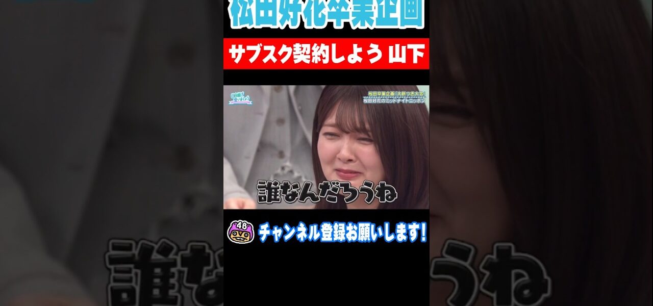 ホームページ卒業生松田好花卒業企画!サブスク契約しよう 山下葉留花 卒業生 松田好花卒業企画!サブスク契約しよう 山下葉留花 管理人 投稿日: 2026年3月3日 乃木坂46 櫻坂46 日向坂46 の話をしている いまけん です! 日向坂で会いましょうの切り抜きになります!松田好花ちゃんの卒業企画での山下葉留花ちゃんの切り抜きになります! #金村美玖 #shorts #ひなあい 共有: Facebook で共有 (新しいウィンドウで開きます) Facebook X で共有 (新しいウィンドウで開きます) X いいね:いいね 読み込み中… 返信する コメントをキャンセルメールアドレスが公開されることはありません。 ※ が付いている欄は必須項目ですコメント ※ 名前 ※ メール ※ サイト 次回のコメントで使用するためブラウザーに自分の名前、メールアドレス、サイトを保存する。 管理人 すべての投稿を表示 投稿ナビゲーション 前の投稿【日向坂46】「日向坂で会いましょう」『夏の恋が始まりそうな瞬間 バカンス気分で告白しよう』 次の投稿【日向坂46】おひさま、若林さんにハタかれる上村ひなのに胸熱 #日向坂46 #日向坂 #日向坂で会いましょう #乃木坂46 #櫻坂46 こちらの記事はいかがですか? 卒業生 若様の伝家の宝刀を見て大喜びする松田好花ちゃんが可愛いと話題のシーン 管理人 2022年10月12日 卒業生 胸キュンシーンを妄想してキュンキュンする激かわ♡みくにん♡ 管理人 2022年8月28日 卒業生 【推し変疑惑】かほりんの告白に初めての笑顔を見せる春日俊彰(45) 管理人 2024年2月20日 卒業生 突然話を振られて驚く河田陽菜が可愛いと話題のシーンがこちら 管理人 2022年8月24日