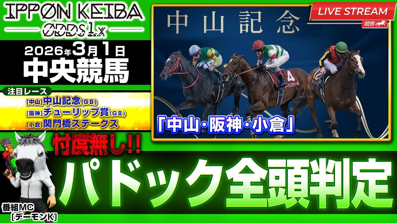 【中山記念】【3/1(後半)中央競馬ライブ 】全頭パドック判定×馬柱解説!買える馬&危険馬を見抜く!2026年3月1日(日)【IPPON競馬ライブ配信】