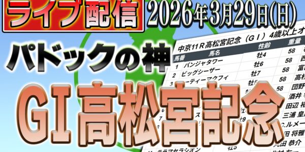 馬券締め切り時間注意! 2026年3月29日(日)中京8R~高松宮記念(GⅠ)パ…