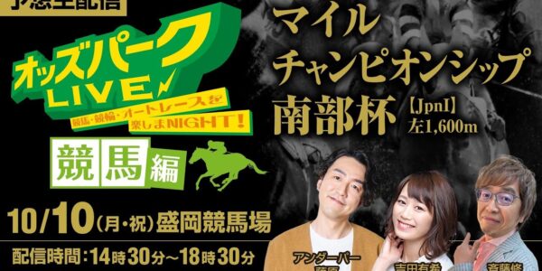 盛岡競馬”マイルチャンピオンシップ南部杯JpnⅠ”を生配信!<競馬・競輪・オートレースを楽しまNIGHT!オッズパークLIVE 競馬編>2022年10月10日(祝月) 14:30~18:30