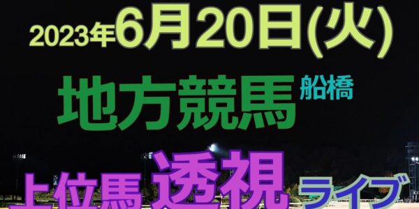 【地方競馬ライブ(馬番透視)】6/20(火) 船橋競馬 の馬券に絡む馬番を透視し配信します。穴馬探しや大穴馬券ゲットにお役立て下さい。