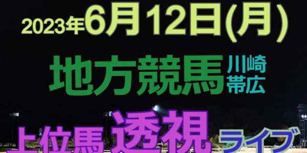 【地方競馬ライブ(馬番透視)】6/12(月) 川崎競馬 帯広競馬 の馬券に絡む馬番を透視し配信します。穴馬探しや大穴馬券ゲットにお役立て下さい。