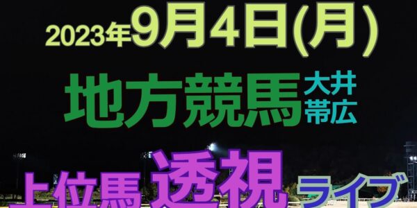 【地方競馬ライブ(馬番透視)】9/4(月)大井競馬 帯広競馬 の馬券に絡む馬番を透視し配信します。穴馬探しや大穴馬券ゲットにお役立て下さい。
