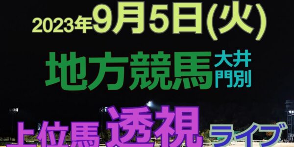 【地方競馬ライブ(馬番透視)】9/5(火)大井競馬 門別競馬 の馬券に絡む馬番を透視し配信します。穴馬探しや大穴馬券ゲットにお役立て下さい。
