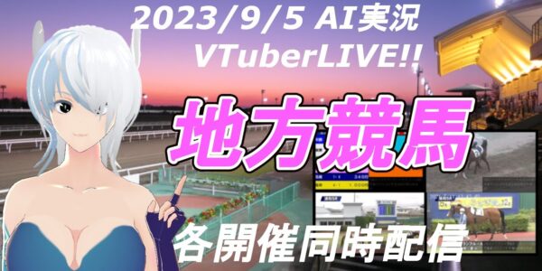 [#VTuber]JRA & 地方競馬ライブ20230905 AI実況☆秋桜(あきざくら)賞(門別競馬 水沢競馬 大井競馬 金沢競馬 名古屋競馬)各開催同時配信