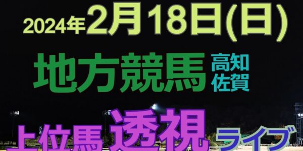 地方競馬ライブ(馬番透視)】2/18(日) 高知競馬 佐賀競馬 の馬券に絡む馬番を透視し配信します。穴馬探しや大穴馬券ゲットにお役立て下さい。