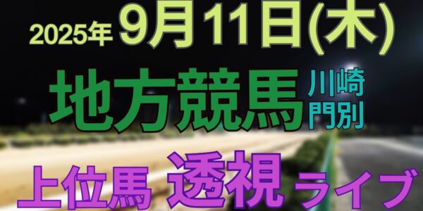 9/11(木)川崎競馬 門別競馬 の馬券に絡む馬番を透視し配信します。穴馬探しや大穴馬券ゲットにお役立て下さい