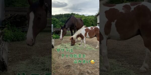 馬と暮らす牧場の日常です🤠 アイとサクラは朝日を浴びながらのんびりと朝食タイム😋…