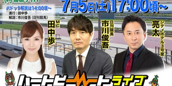 【船橋競馬】ハートビートライブ #204【前半パドック解説 進行:田中歩/解説:市川俊吾(日刊競馬)】【後半出演 進行:田中歩/ゲスト:シティホテル3号室 亮太/解説:市川俊吾(日刊競馬)】