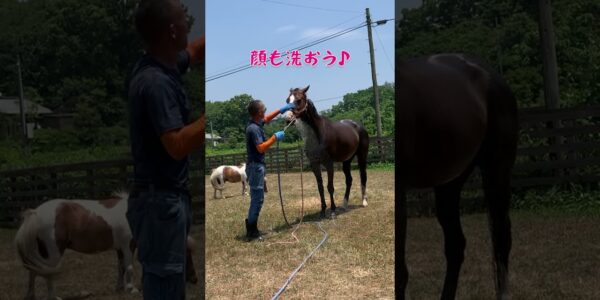 #馬との暮らし #馬と暮らす牧場 #なごみ牧場 #引退競走馬のアイ #ポニーのサクラ #朝日 #朝食 #shorts