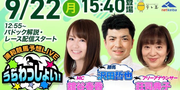 2025年9月22日(月)浦和競馬予想LIVE「うらわっしょい!」12時55分パドック解説スタート・15時40分出演者登場!