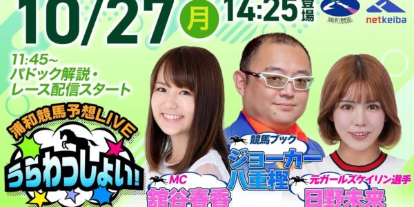 2025年10月27日(月)浦和競馬予想LIVE「うらわっしょい!」11時45分パドック解説スタート・14時25分出演者登場!
