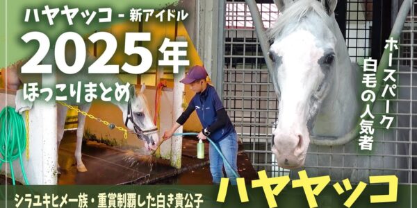 2025年にノーザンホースパークに来てくれた、キングカメハメハ産駒の白毛馬ハヤヤ…
