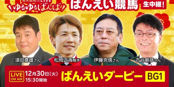 楽天競馬LIVE:#ゆるゆるばんば 12月30日(火) #古谷剛彦 #須田鷹雄 #伊藤克信 #松岡正海(JRA騎手)