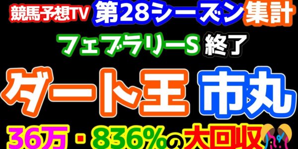 【競馬予想TV 第28シーズン集計】 ダート王・市丸 36万円、836%の大回収🎊🎊🎊 【フェブラリーS 終了】
