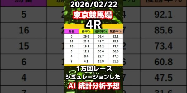 【競馬予想】2026/02/22 東京競馬全レースAI予想!! #shorts #競馬予想 #フェブラリーステークス 予想 #中央競馬ライブ