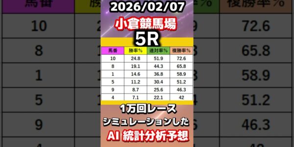 【競馬予想】2026/02/07 小倉競馬全レースAI予想!! #shorts #競馬予想 #中央競馬ライブ #中央競馬予想 #小倉競馬予想
