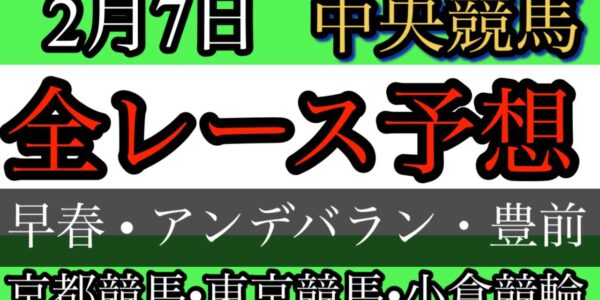 2月7日中央競馬予想 全レース予想 平場予想 早春ステークス アンデバランS 豊前S 東京競馬予想 京都競馬予想 小倉競馬予想 テレビ山梨賞 春菜賞 エルフィンS 橿原S RKB賞 戸畑特別 未勝利戦