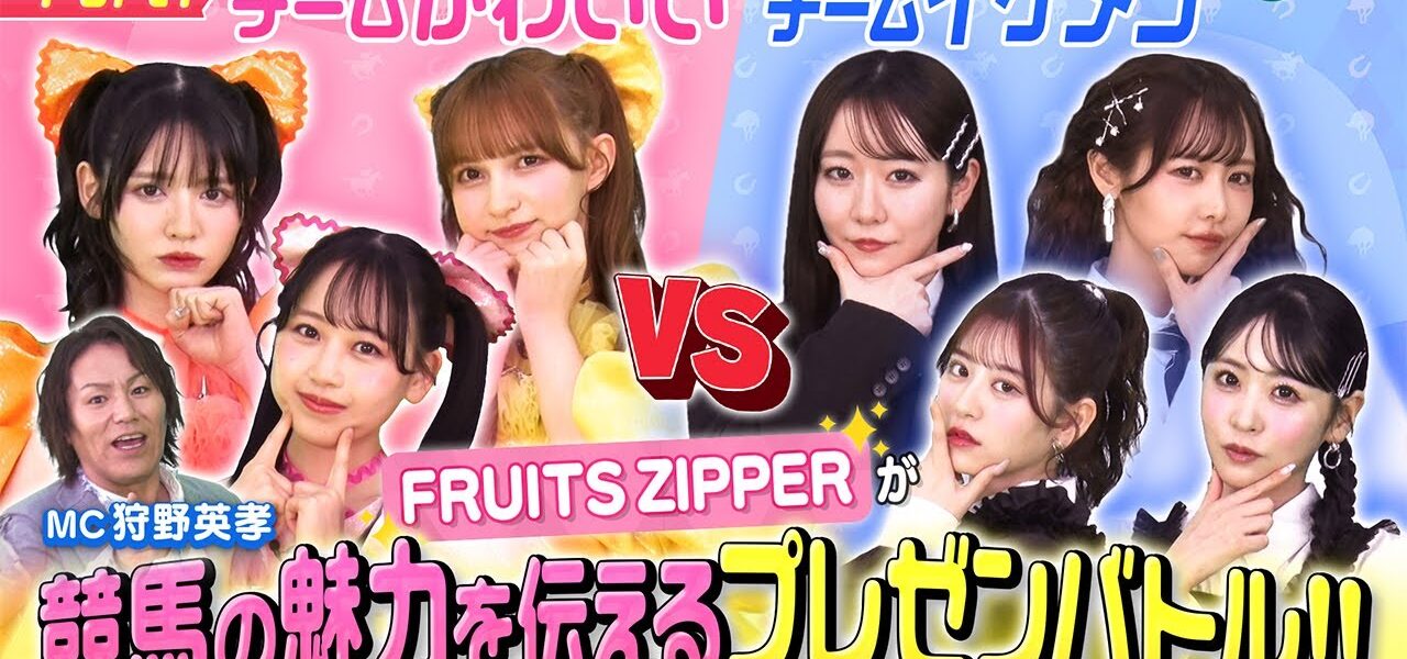 FRUITS ZIPPERと狩野英孝のバラエティ動画「かわいいけいばvsイケメンケイバ」Part1公開中!