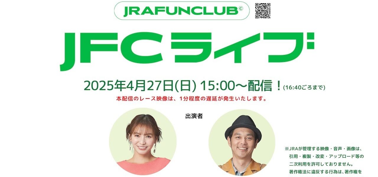 オンラインコミュニティ「 JRA FUN CLUB」の公式チャンネルにてお送りするJRAのライブ配信番組。