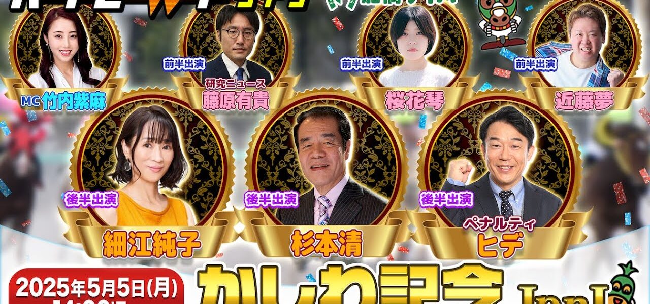 竹内紫麻さん(フリーアナウンサー)/杉本清さん(フリーアナウンサー)/ペナルティ ヒデさん(芸人)/細江純子さん(ホースコラボレーター)