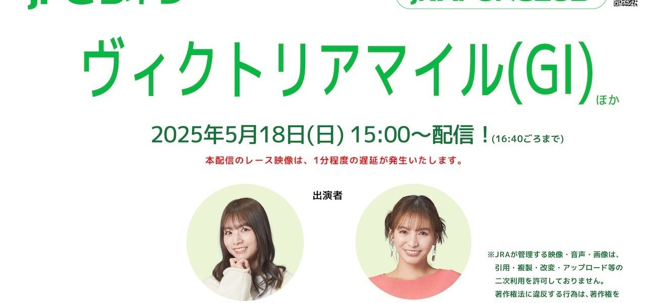 5月18日(日)は、東京11レース #ヴィクトリアマイル 、京都11レース 、東京12レース、京都12レース の配信を予定しています!