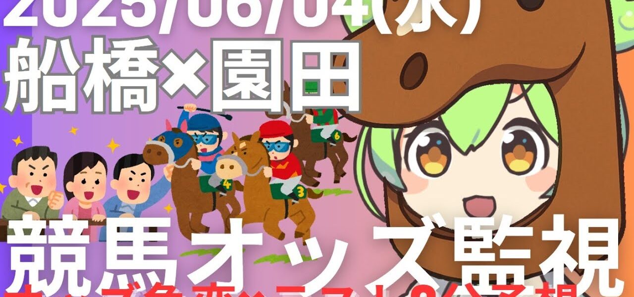 ・2025/06/04 開催地方競馬(船橋・園田)の単勝・複勝オッズ変動を監視する配信です。