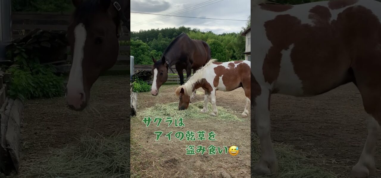 馬と暮らす牧場の日常です🤠 アイとサクラは朝日を浴びながらのんびりと朝食タイム😋