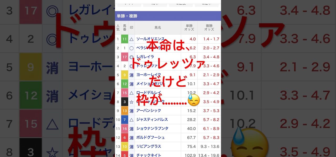 ホームページラジオ#宝塚記念 #競馬 #JRA #予想 #ドゥレッツァ #レガレイラ #べラジオオペラ ラジオ #宝塚記念 #競馬 #JRA #予想 #ドゥレッツァ #レガレイラ #べラジオオペラ nogizaka 投稿日: 2025年6月14日 共有: Facebook で共有するにはクリックしてください (新しいウィンドウで開きます) Facebook クリックして X で共有 (新しいウィンドウで開きます) X いいね:いいね 読み込み中… 返信する コメントをキャンセルメールアドレスが公開されることはありません。 ※ が付いている欄は必須項目ですコメント ※ 名前 ※ メール ※ サイト 次回のコメントで使用するためブラウザーに自分の名前、メールアドレス、サイトを保存する。 nogizaka すべての投稿を表示 投稿ナビゲーション 前の投稿宝塚記念2025本命発表!べラジオオペラやレガレイラが激突!勝つのはあの馬!?#競馬 #競馬予想 #馬券 #宝塚記念 #おすすめ #shorts 次の投稿【競馬同時視聴配信】函館スプリントS 2025 ほか全R対象 中央競馬ライブ 四条大学血統ゼミ(宝塚記念前日展望) こちらの記事はいかがですか? ラジオ 2024/4/6 中山競馬1R女性アナウンサー場内実況 ラジオNIKKEI藤原菜々花さん(勝馬7番:ショーヴァロンス) nogizaka 2024年4月6日 ラジオ 【競馬】馬めがねの中央競馬ライブ。ラジオNIKKEI賞とCBC賞 nogizaka 2023年7月2日 ラジオ 「べラジオソノダラブ」待望の復帰戦~ソノダのエース4歳初戦を勝利で飾れるか~【ベラジオch】 nogizaka 2024年3月23日 ラジオ 【ブルーバードカップ2025】【自信度A】中央馬3頭では決まらない【競馬予想】 nogizaka 2025年1月21日