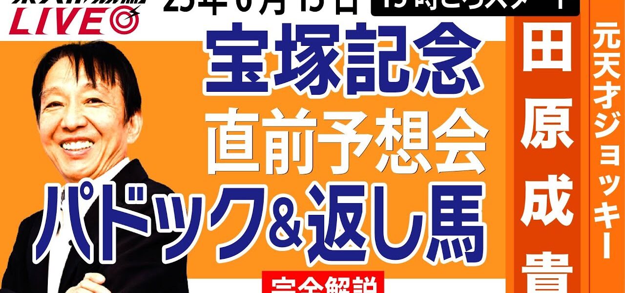 宝塚記念をみんなで楽しく予想しましょう!元天才ジョッキー・田原成貴氏がパドック&返し馬診断を行います。