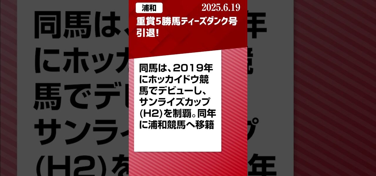 ホームページ【浦和】重賞5勝馬ティーズダンク号引退!!|2025/6/19 #地方競馬ニュース 【浦和】重賞5勝馬ティーズダンク号引退!!|2025/6/19 #地方競馬ニュース nogizaka 投稿日: 2025年6月19日 #Shorts #地方競馬 #浦和競馬 #競馬 #ティーズダンク #引退 🖥️ 世界初地方馬主Vtuberユウマが「馬主生活」をゆるっとお届け中! 地方競馬ニュースはもちろん、愛馬の成績まとめや競馬場観戦記も投稿しています 🎬 ▶️ ぜひチャンネル登録して次の動画もお楽しみに🐴 共有: Facebook で共有するにはクリックしてください (新しいウィンドウで開きます) Facebook クリックして X で共有 (新しいウィンドウで開きます) X いいね:いいね 読み込み中… 返信する コメントをキャンセルメールアドレスが公開されることはありません。 ※ が付いている欄は必須項目ですコメント ※ 名前 ※ メール ※ サイト 次回のコメントで使用するためブラウザーに自分の名前、メールアドレス、サイトを保存する。 nogizaka すべての投稿を表示 投稿ナビゲーション 前の投稿競馬予想TV!#1269 2025年5月17日 🅵🆄🅻🅻🆂🅷🅾🆆 1080pHD 次の投稿白毛の星、 まさかの去勢引退 こちらの記事はいかがですか? 有馬記念で引退した馬の写真集。ゴールドシップ引退式 #競馬 #ゴールドシップ #shortvideo #shorts #引退馬 nogizaka 2024年12月18日 exショートアニメ『何年経っても』 #ソーヴァリアント #引退 #競馬 nogizaka 2024年6月5日 競馬 #騎手 #ゴールドシップ #馬 #引退 #学校 #アニメ #コント #うさぎ #かわいい #国さん nogizaka 2024年5月20日 【競馬速報】ジェンティルドンナ繁殖牝馬引退! nogizaka 2025年7月16日