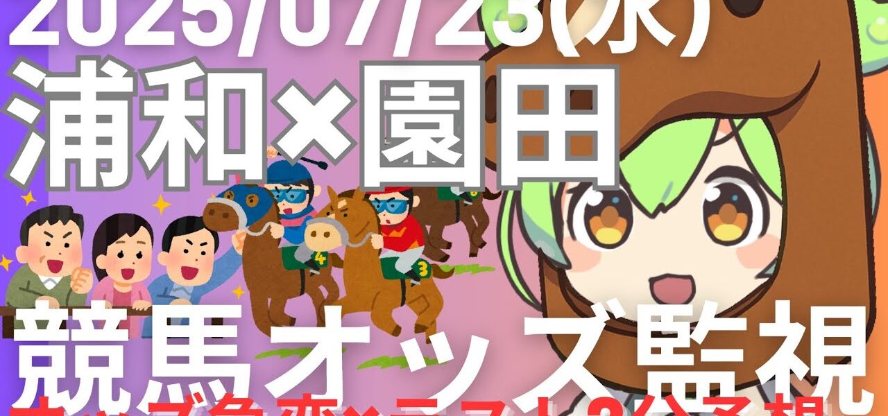 ・2025/07/23 開催地方競馬(浦和・園田)の単勝・複勝オッズ変動を監視する配信です。